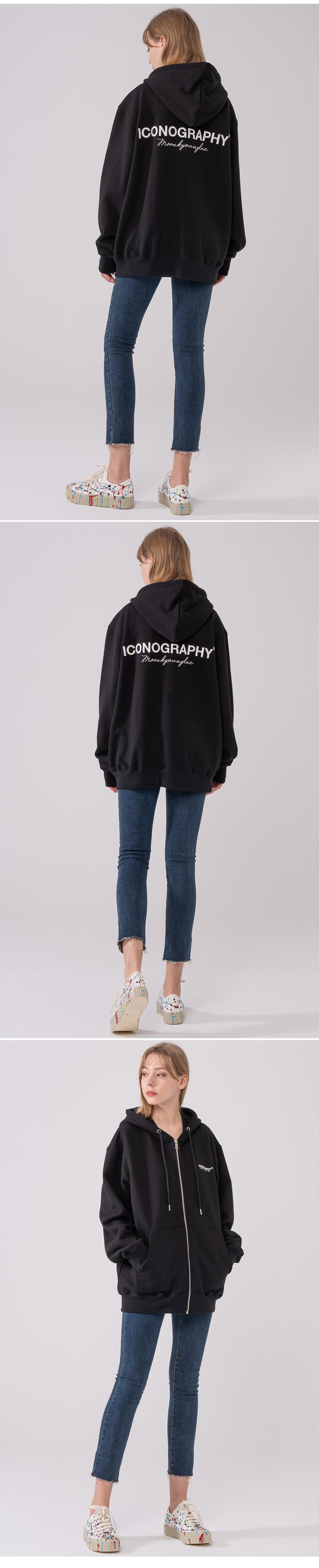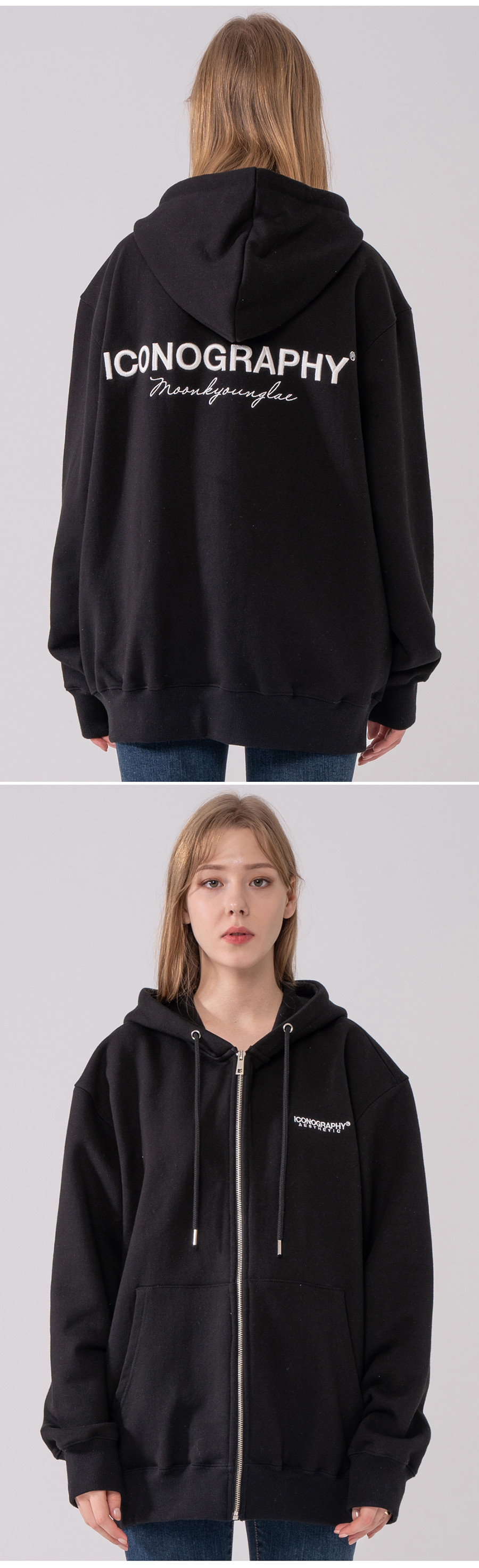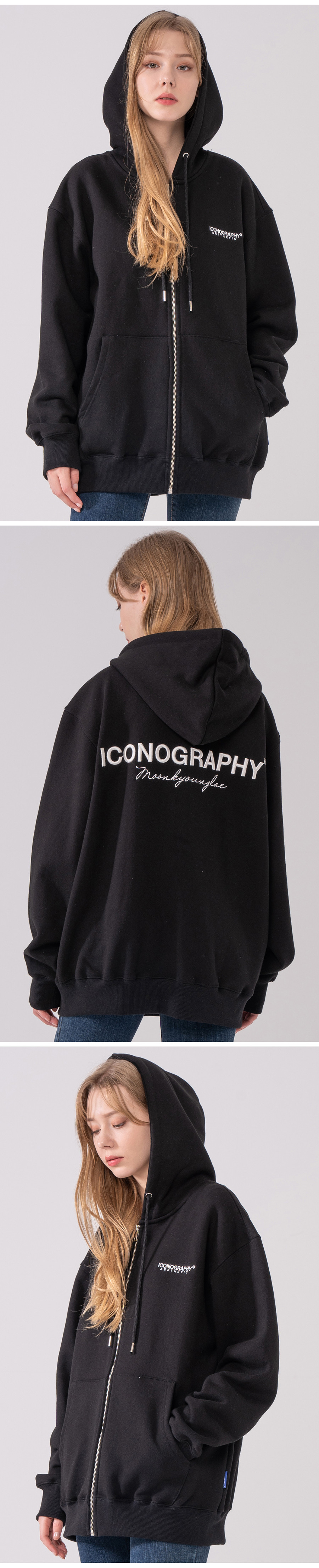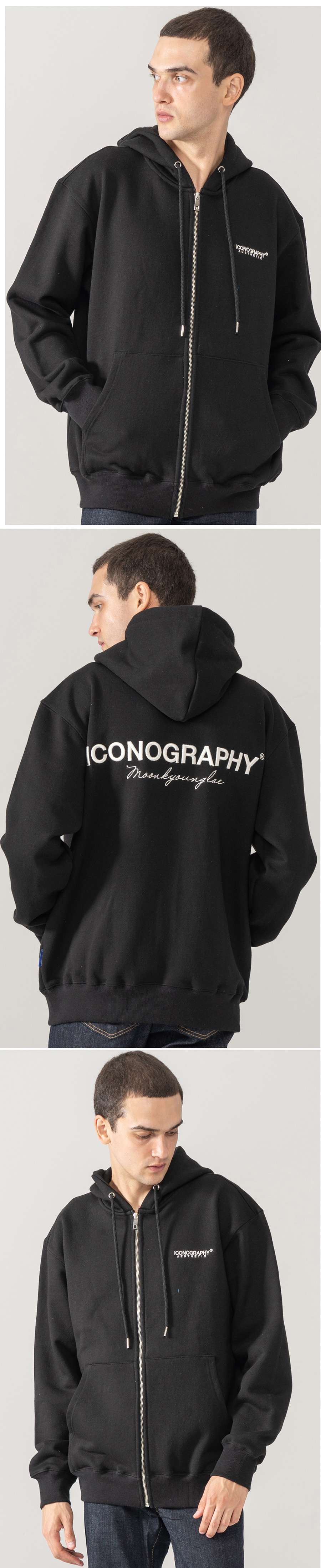 헤비코튼 집업 볼륨켈리그라피 아이코노 BK
